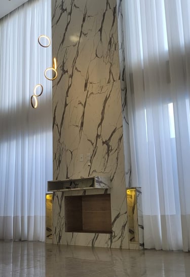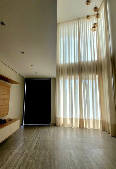 As cortinas de pé direito alto elas trazem imponência, elegância e valorizam muito o ambiente. Essas cortinas necessitam de um planejamento correto para ficarem bonitas e funcionais