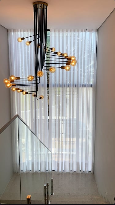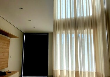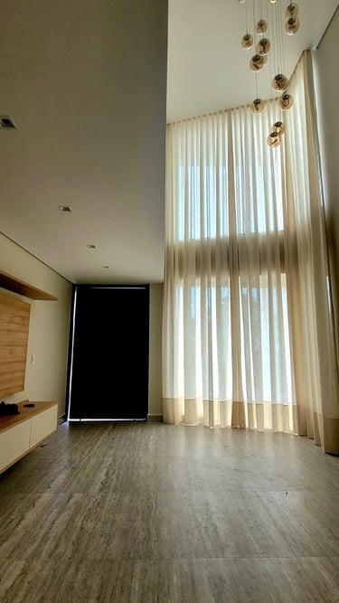 As cortinas de pé direito alto elas trazem imponência, elegância e valorizam muito o ambiente. Essas cortinas necessitam de um planejamento correto para ficarem bonitas e funcionais